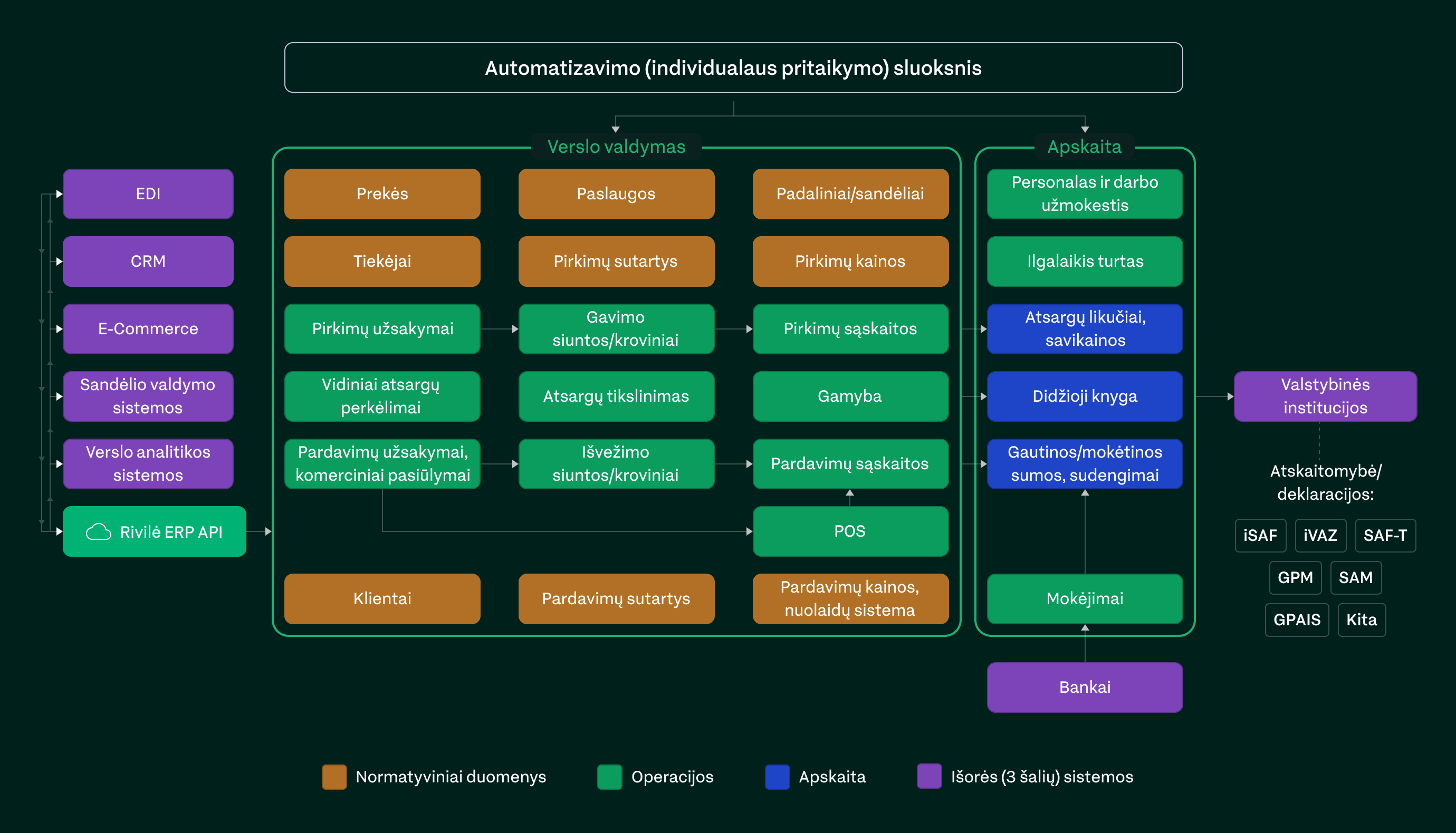 Automatizacijas ir kitus individualius pritaikymus galime įgyvendinti pagal Jūsų verslo poreikius. Sistemoje kurkite savo verslo išskirtinumui reikalingus procesus, funkcionalumus.
